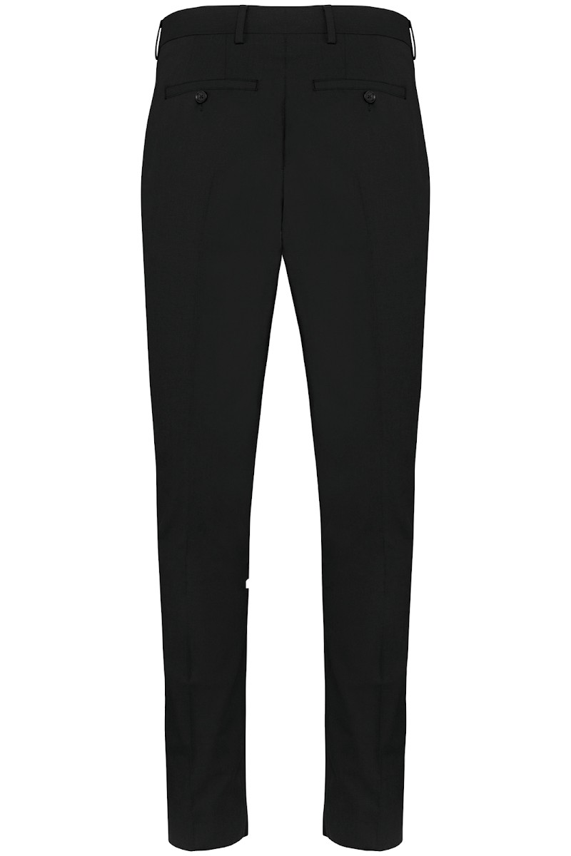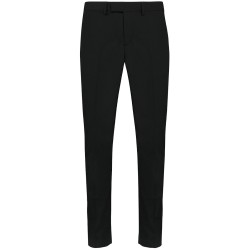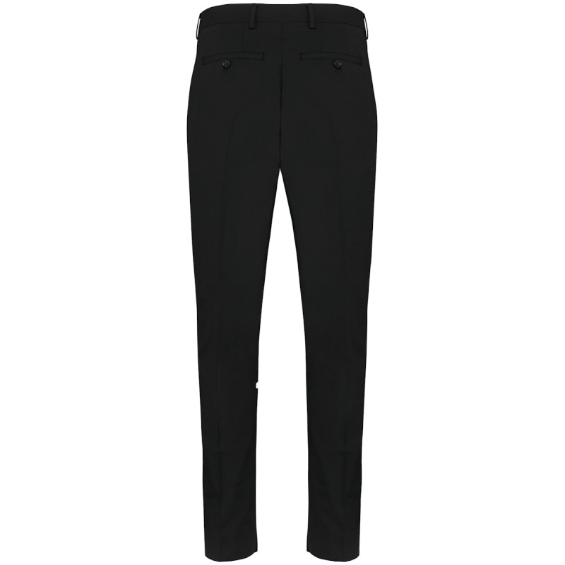50% polyester / 23% viscose / 22% laine / 5% élasthanne. Deux poches italiennes devant. Deux poches dos passepoilées avec des boutons ton sur ton, ainsi qu'une piqûre nervure autour. Plis permanent jambes devant et dos. Braguette avec zip en nylon ton sur ton avec deux crochets en métal. Ceinture avec passants. Doublure en polyester haut de jambe devant pour un meilleur confort. Finition bas de jambe ourlet invisible. Pas d'étiquette de marque, uniquement une puce de taille pour faciliter la personnalisation.
