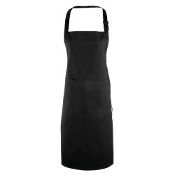 100% coton certifié Fairtrade (commerce équitable) « HABILITER L'AGRICULTEUR, PROTÉGER L'ENVIRONNEMENT ». Attaches dans la continuité du tissu et lanière autour du cou à boucle réglable. Fini infroissable et poche unique, lavage domestique à 40ºC.