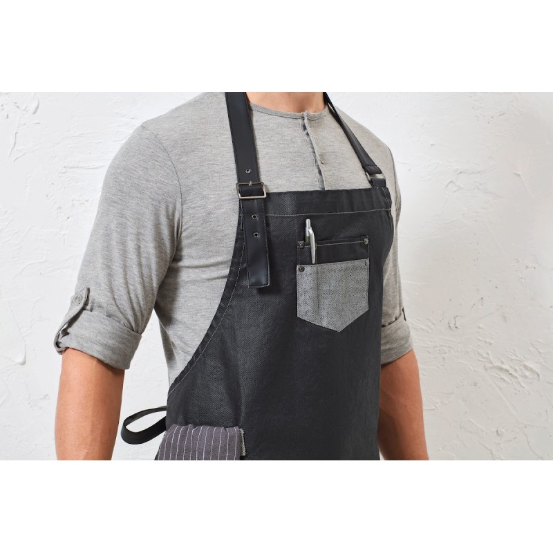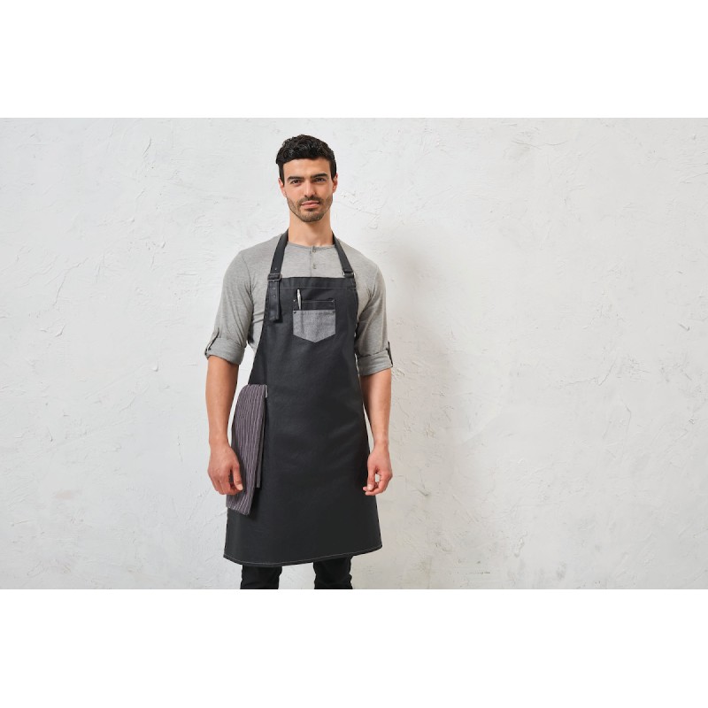 Tablier bavette denim effet ciré et simili cuir Division