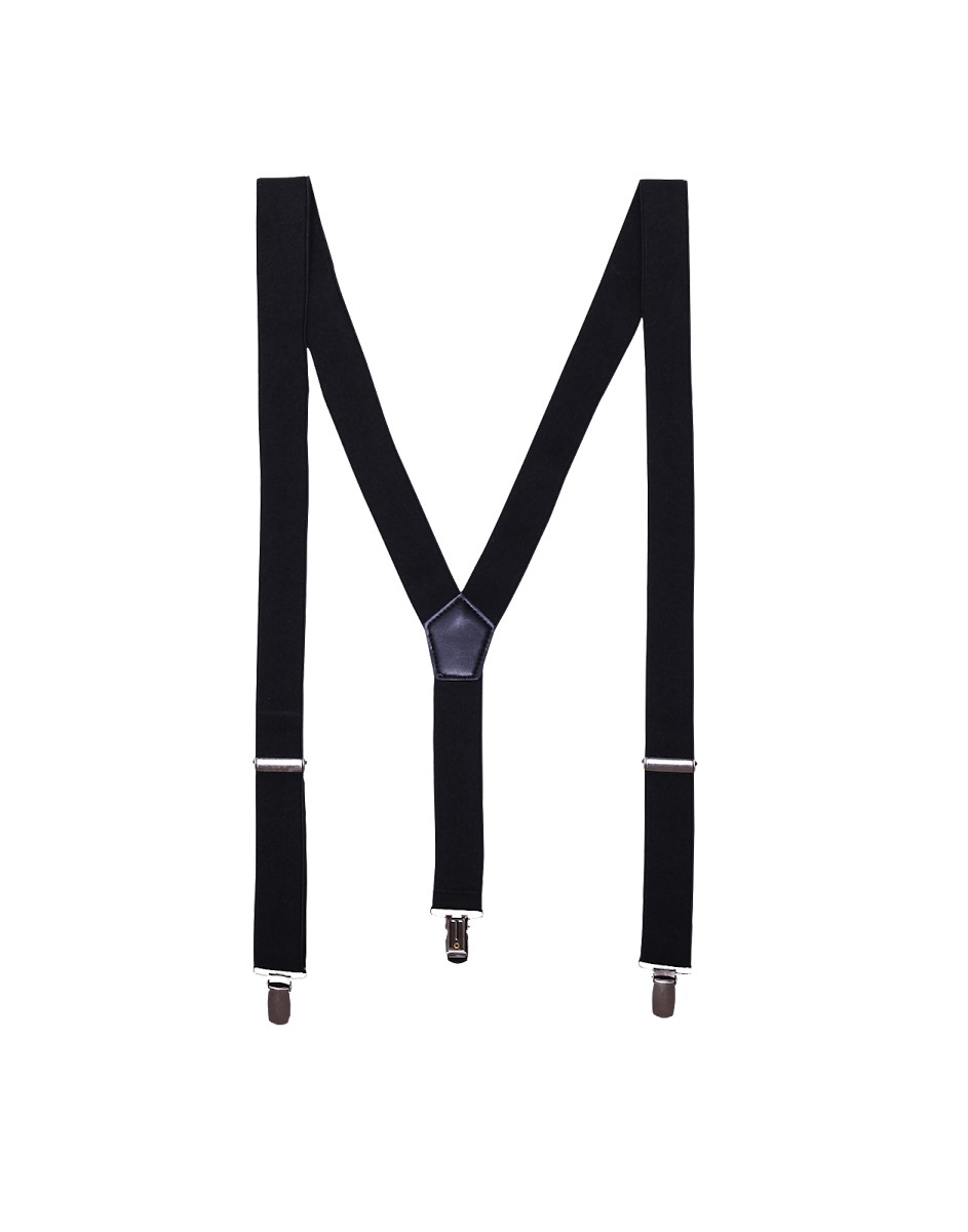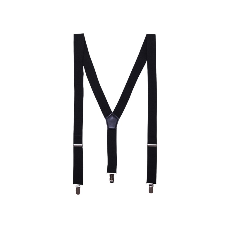 Bretelles en Y dans le dos, tissu élastique extensible pour le confort et le style. Bretelle de 3 cm de large. Deux clips métalliques anti-glissement sur l'avant pour se fixer au pantalon. Un clip dans le dos. Boucles autobloquantes métalliques pour l'ajustage, ce qui en fait un article à taille unique.