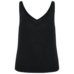 100% lin. Maille. Coupe ajustée. Encolure devant et dos en V. Finition encolure et emmanchures avec biais en matière principale et piqûre nervure. Fentes sur les côtés. Ourlet simple surpiqûre bas de vêtement.