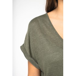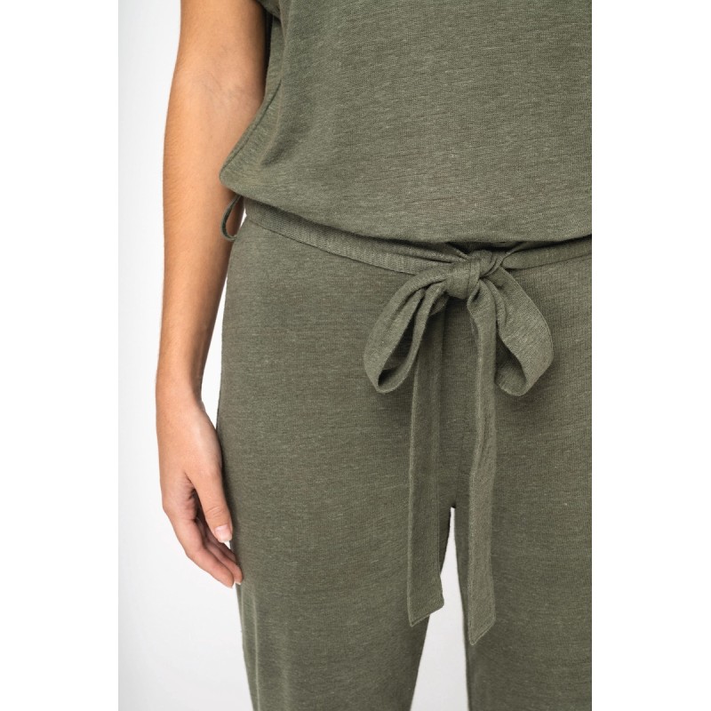 Combinaison en maille manches courtes en lin femme