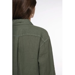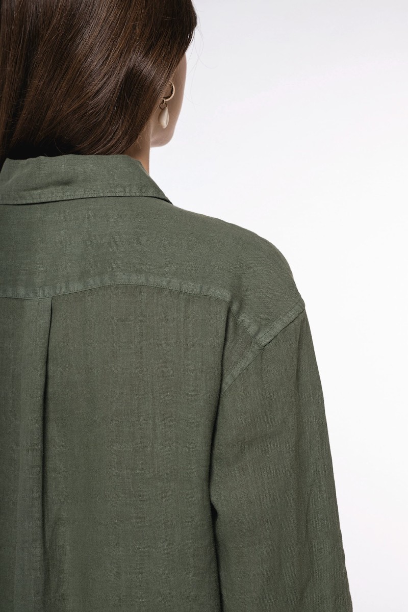 100% lin. Tissé. Coupe confort aux épaules tombantes. Col avec pied de col. Patte de boutonnage avec boutons en plastique recyclé blanc effet nacré. Empiècement dos doublé avec plis d'aisance. Bas de manches avec poignet, fente patte capucin avec boutons. Fente sur les côtés pour plus d'aisance. Ourlet simple surpiqûre bas de vêtement. Vêtement lavé après montage : les couleurs peuvent varier d’une couleur à l’autre.