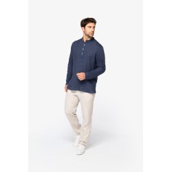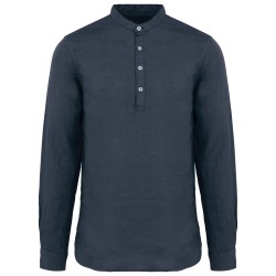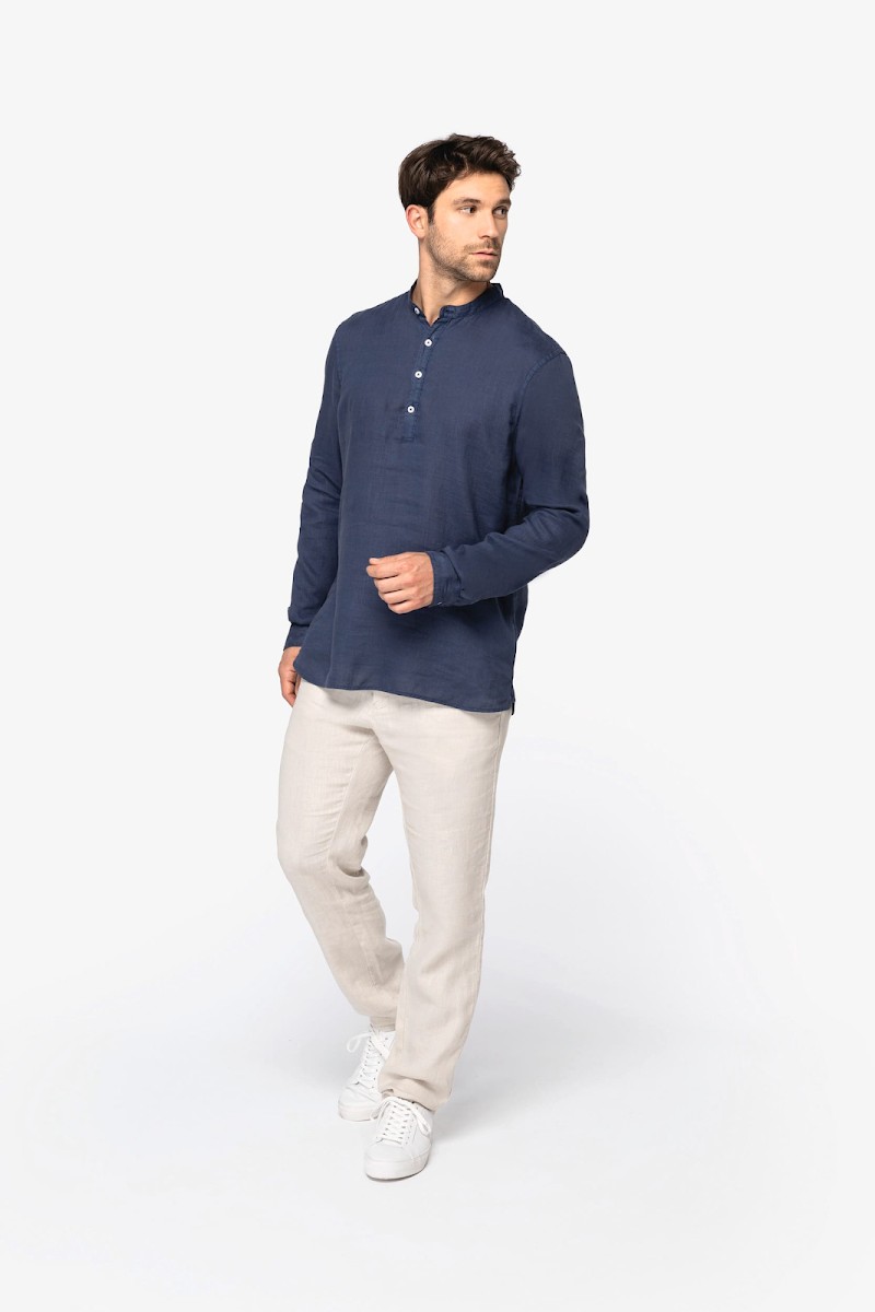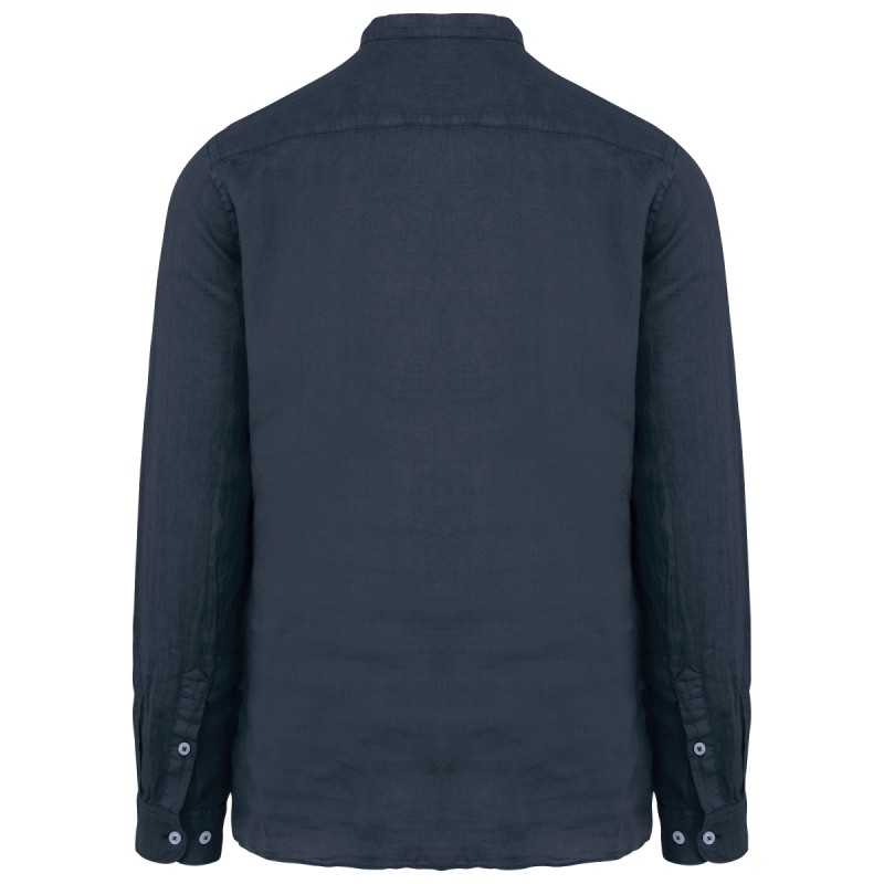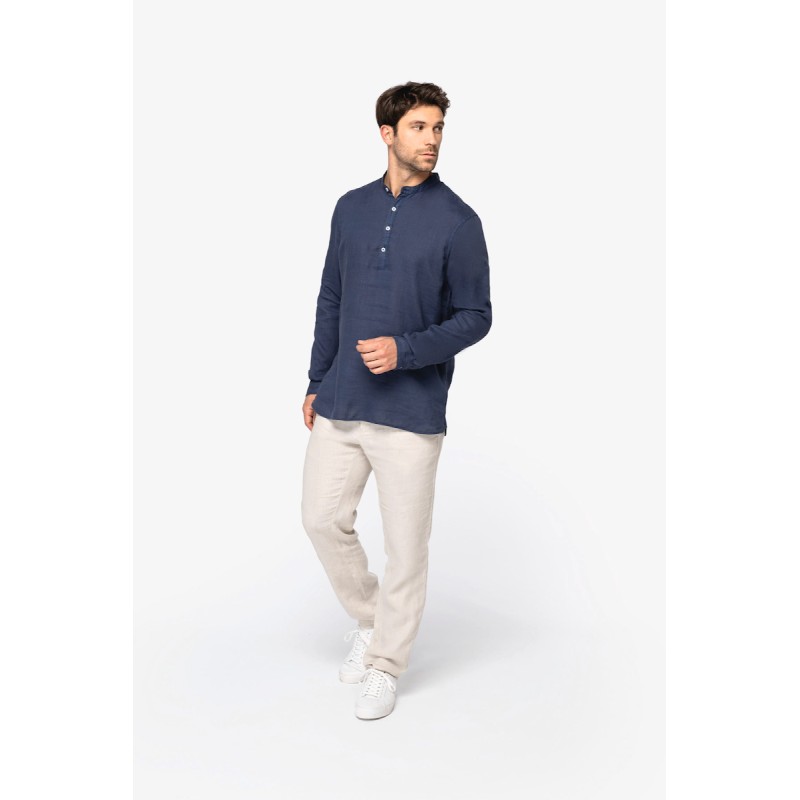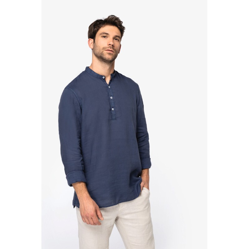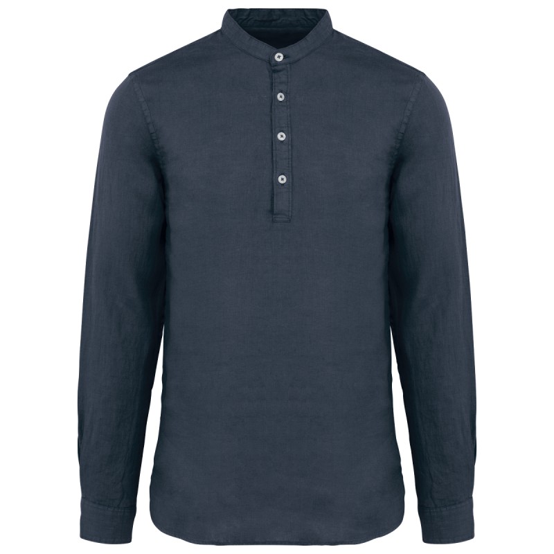 Chemise à col Mao délavée en lin homme