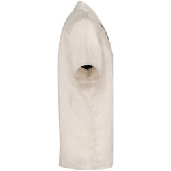 100% lin. Tissé. Coupe ajustée. Col bowling. Empiècement dos doublé. Ourlet simple surpiqûre bas de manches et de vêtement. Patte de boutonnage avec boutons contrastés effet nacré en plastique recyclé, avec une parmenture en finition intérieur. Vêtement lavé après montage : les couleurs peuvent varier d'un produit à l'autre.
