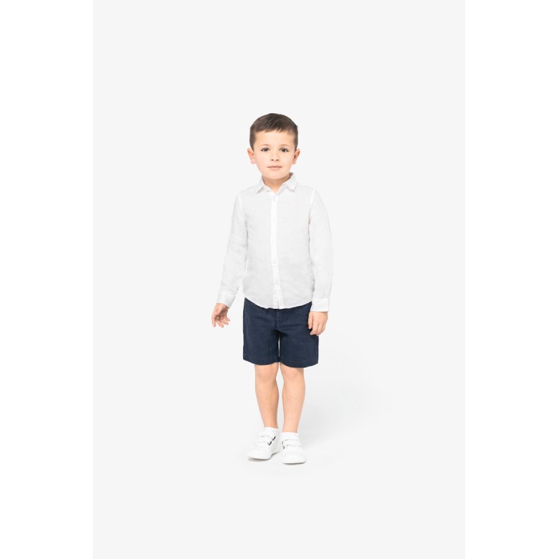100% lin. Tissé. Coupe ajustée. Coutures latérales. Patte de boutonnage rapportée avec boutons effet nacré en plastique recyclé. Bande intérieure encolure en chevrons. Empiècement dos doublé. Patte capucin aux poignets arrondis avec boutonnage. Ourlet simple surpiqûre bas de vêtement et dessous de manches avec double surpiqûre. Vêtement lavé après montage : les couleurs peuvent varier d'un produit à l'autre.