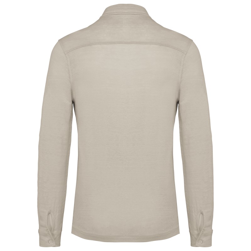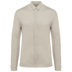 100% lin. Maille. Coupe ajustée. Col avec pied de col. Empiècement dos. Poignet boutonné avec fente. Patte de boutonnage avec boutons contrastés effet nacré en plastique recyclé sur toutes les couleurs. Ourlet simple surpiqûre bas de vêtement.
