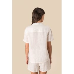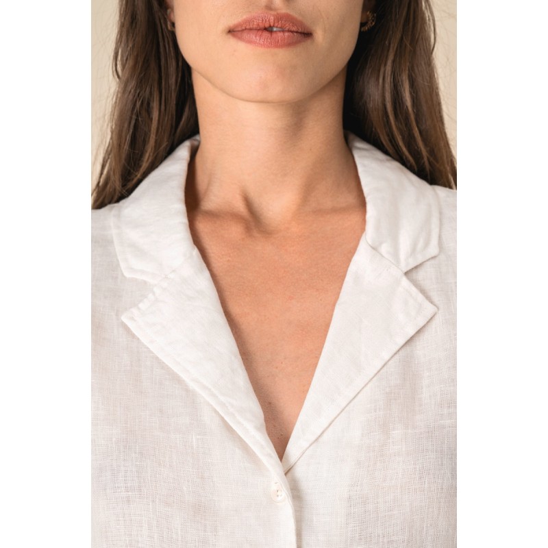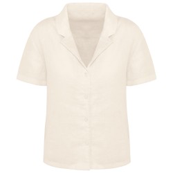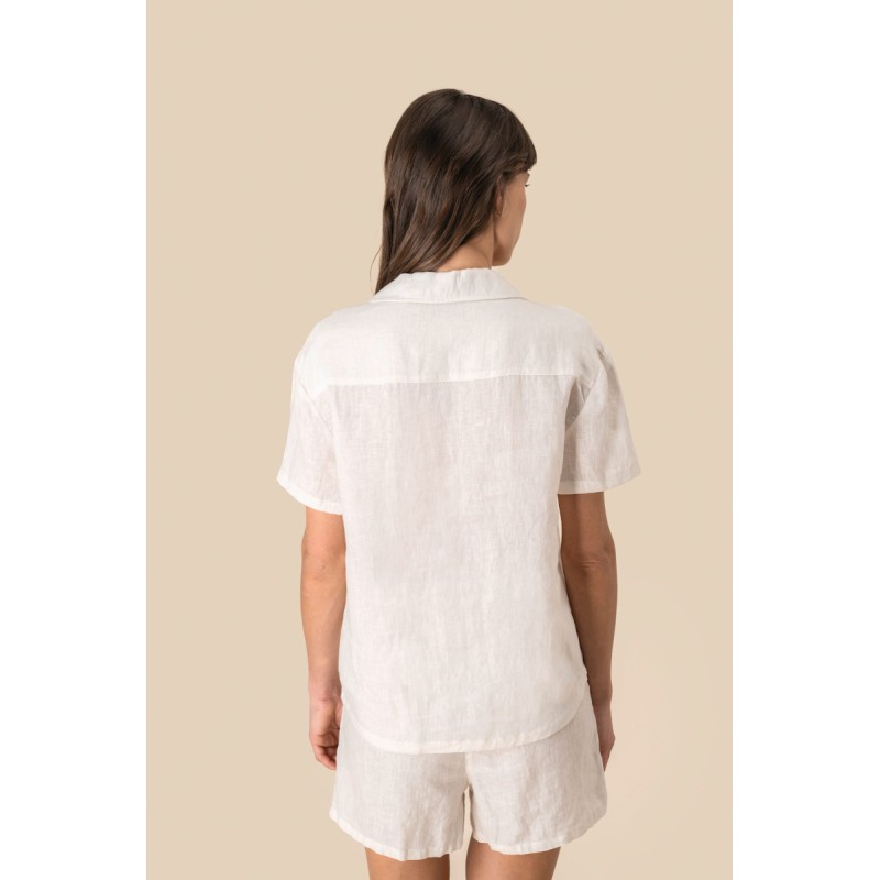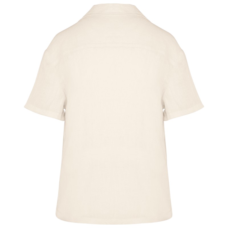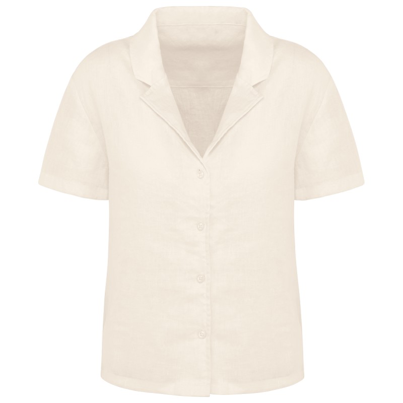 Chemise manches courtes en lin à col bowling femme