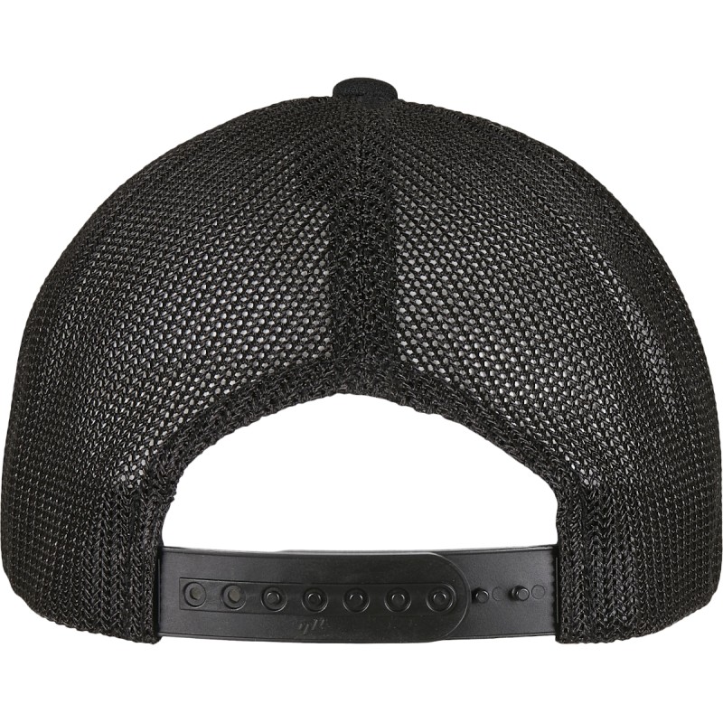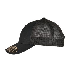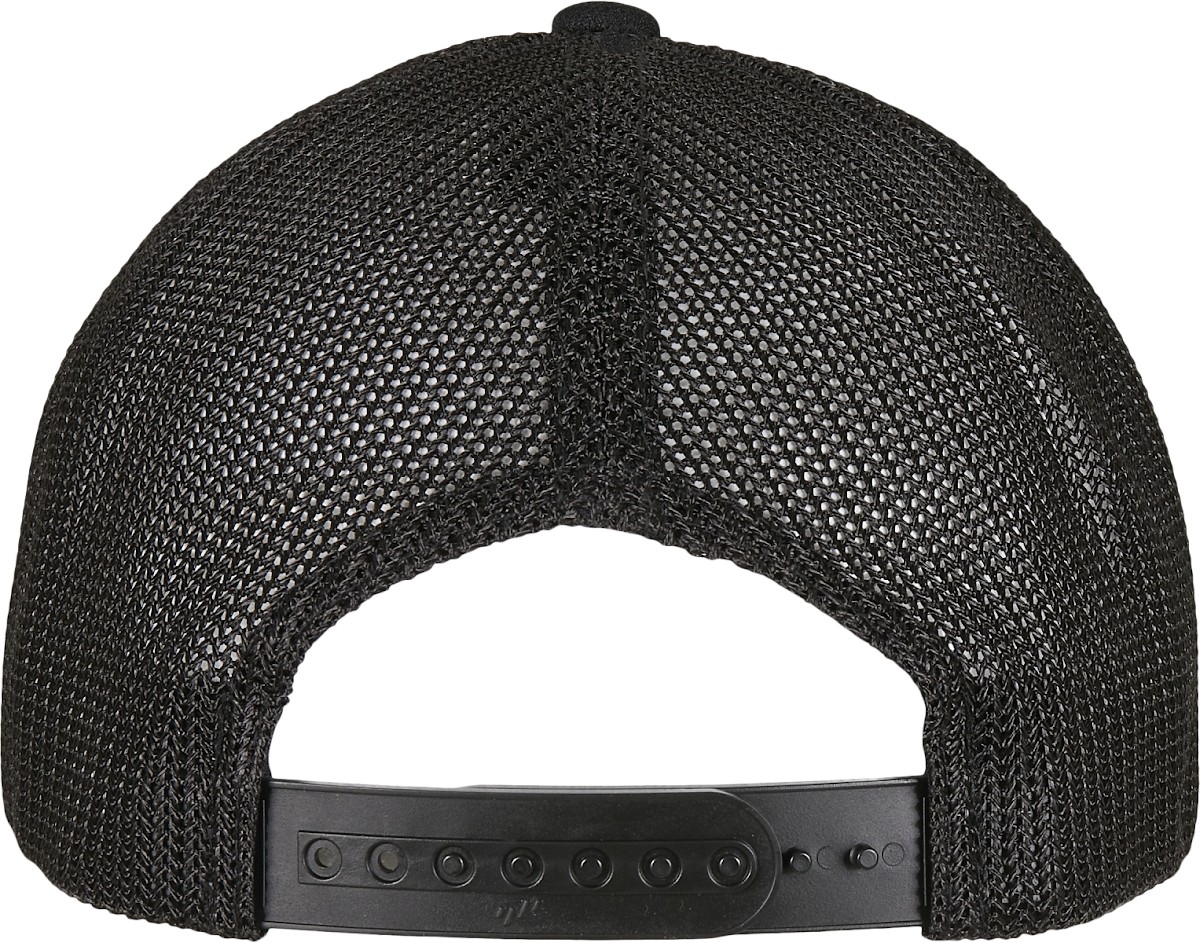 Dos en maille transparent | Deux panneaux avant opaques | Visière précourbée avec coutures décoratives | Fermeture snapback | Fabriqué en polyester recyclé