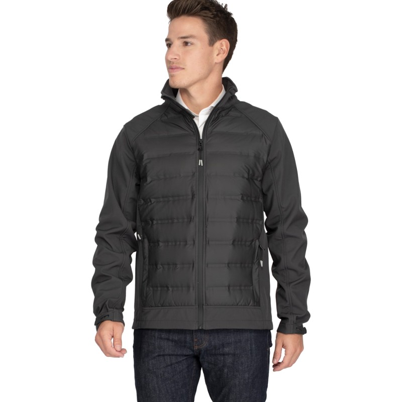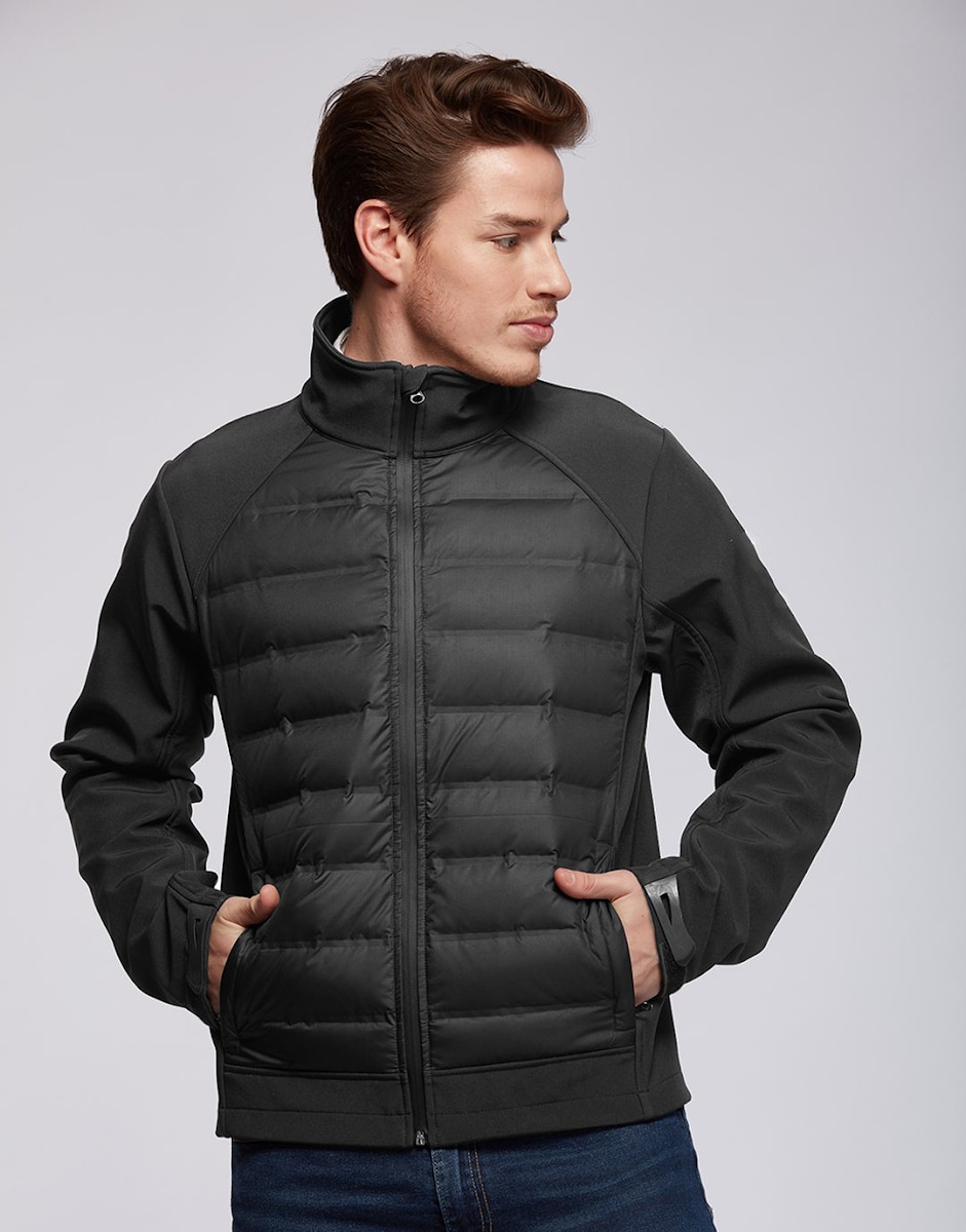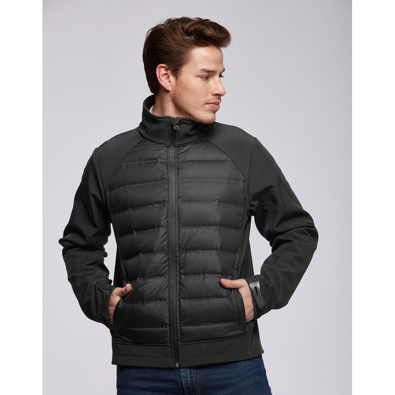 Blouson hybride pour sa combination softshell-doudoune. Le buste est constitué d’une doudoune en duvet véritable avec une construction soudée, imperméable et déperlante. Les manches, les épaules et le dos sont composés d’une matière softshell 3 couches avec membrane qui rend le produit imperméable et déperlant. La doudoune donne le confort et la chaleur quand la softshell confère tenue et allure. 2 poches zippées pour les mains. Revêtement en polyester 50D. Disponible sur stock et livré sous 24/48h sans personnalisation, coloris disponibles : Gris dans les tailles 2XL
