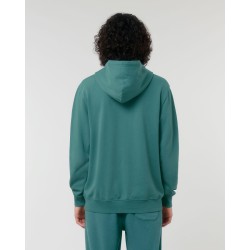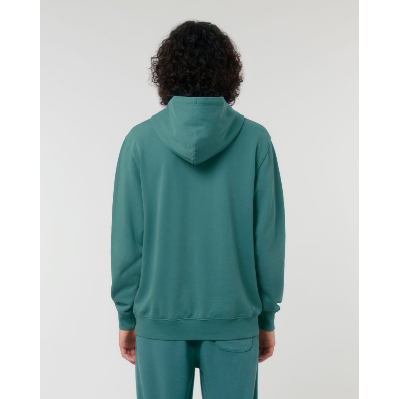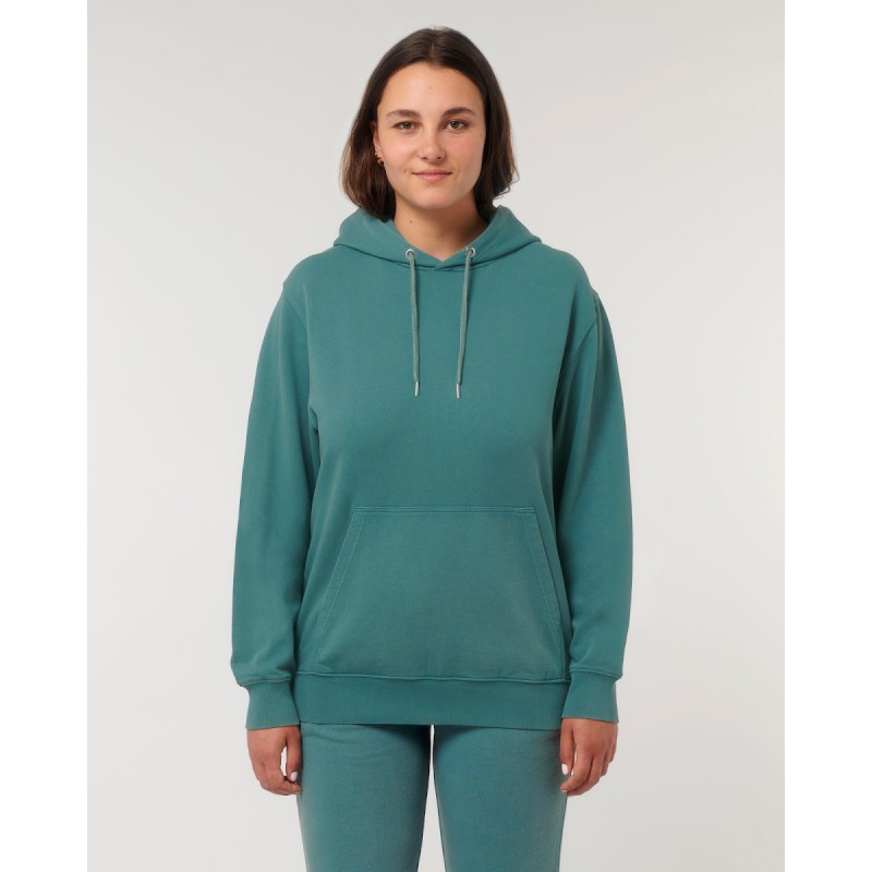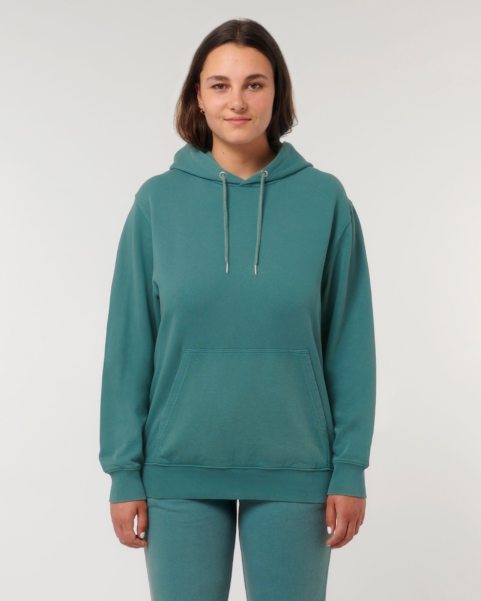 Manches montées Capuche doublée en tissus principal Cordon de serrage rond ton sur ton avec embout fermé métallique Œillets métalliques Bande de propreté en chevron à l’encolure dos Empiecement "Demi-lune"en tissus principal à l'encolure dos Finition bord-cotes 1/1 aux poignets et bas du sweatshirt Double surpiqûres aux emmanchures, poignets et bas du sweatshirt. Poche kangourou à l’avant. Vêtement teint après confection, chaque vêtement peut varier en apparence. Le vêtement est légèrement plus sombre aux coutures. Peut déteindre, suivre les instructions sur l’étiquette d’entretien. Lire attentivement les conseils d’impression