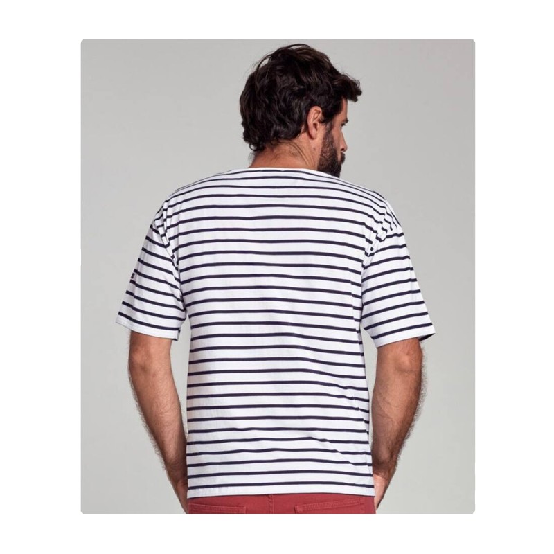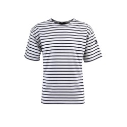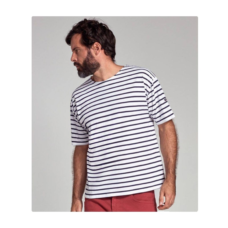 Marinière légère manches courtes. Col bateau. Étiquette Armor Lux sur la manche gauche.