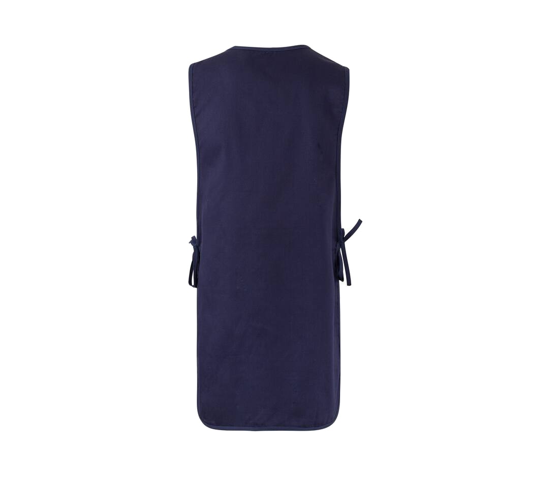 Coutures latérales. Réglable. 1 grande poche séparée en 2 par une couture. Mesures de la poche : 20,5x37cm.