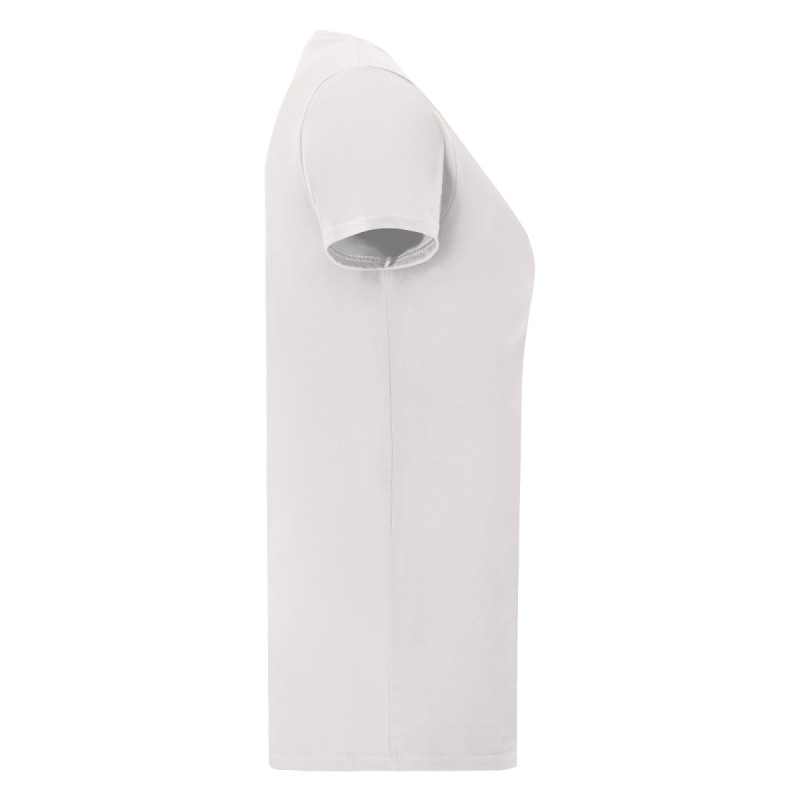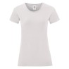 #Ringspun 100% coton peigné#Toucher plus doux#Coutures latérales pour une coupe féminine cintrée#Col rond étroit en bord côte 1X1#Bande de propreté de même tissu au revers du col#Tear away label (étiquette partiellement détachable)