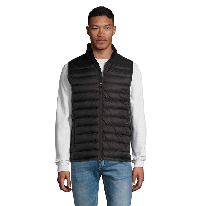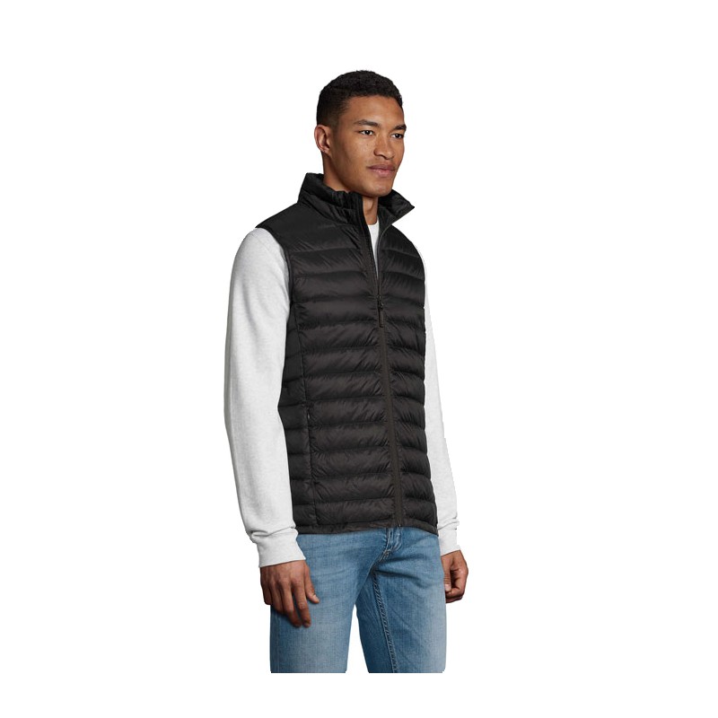 SOL'S WILSON BW MEN; DOUDOUNE ULTRA LIGHT SANS MANCHE HOMME; Extérieur et doublure : 100% polyamide.; Matelassage (attention transition de stock en cours) : 90% duvet et 10% plume jusqu’à épuisement du stock. Ensuite transition sur du 60% Sorona 40% polyester recyclé. Polyamide 380T; Ouverture zippée; 2 poches devant zippées; 2 poches intérieures; Petit col montant; Coupe près du corps; Système de pliage in bag avec stoppeurs.Pour la correspondance des tailles, veuillez vous référer au size chart dans la documentation produit.