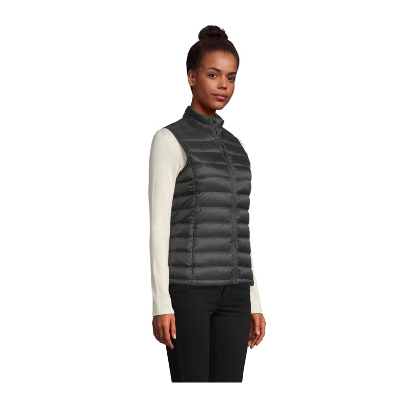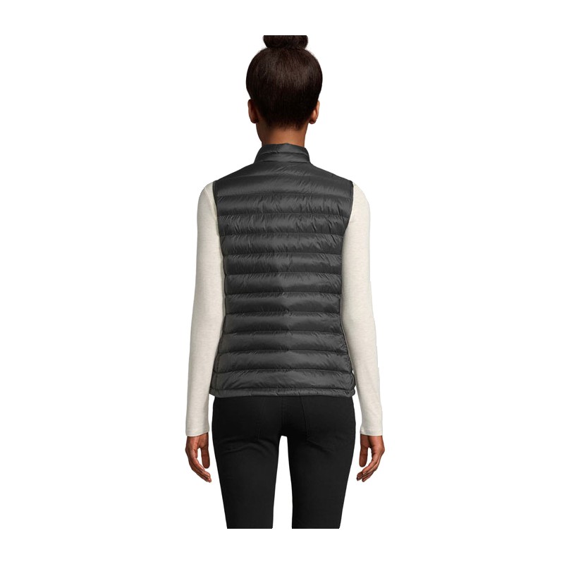 SOL'S WILSON BW WOMEN, DOUDOUNE ULTRA LIGHT SANS MANCHE FEMME, Tissu extérieur et doublure 100% polyamide., Matelassage (attention transition de stock en cours) : 90% duvet et 10% plume jusqu’à épuisement du stock. Ensuite transition sur du 60% Sorona 40% polyester recyclé. Polyamide 380T, Ouverture zippée, 2 poches devant zippées, 2 poches intérieures, Petit col montant, Coupe près du corps, Système de pliage in bag avec stoppeurs.Pour la correspondance des tailles, veuillez vous référer au size chart dans la documentation produit.