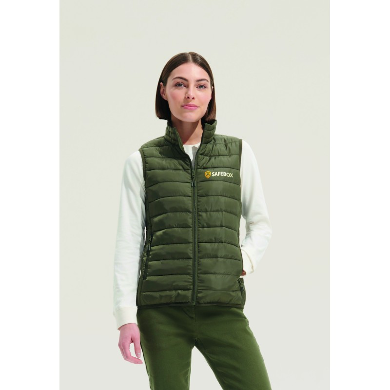 SOL'S STREAM BW WOMEN , women's lightweight bodywarmer, extérieur et doublure: 100% polyester, matelassage : duvet 100% polyester, ouverture principale et poches côté avec zip nylon ton sur ton, curseurs en métal ton sur ton avec tire-zip fantaisie noir, col montant, bas de vêtement et emmanchures avec biais élastiqué ton sur ton, sac de rangement. pour la correspondance des tailles, veuillez vous référer au size chart dans la documentation produit.