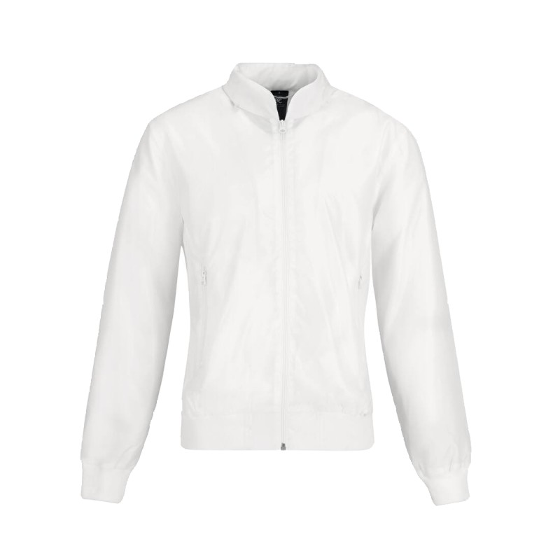 Imperméable, respirant et coupe-vent. Capuche ergonomique (ajustable grâce à un élastique sur le dessus) intégrée dans le col. Col "bomber". Poignets et bords inférieurs en côtes. Fermeture Éclair® SBS ton sur ton. 2 poches avant avec fermeture Éclair®. Accès personnalisation.