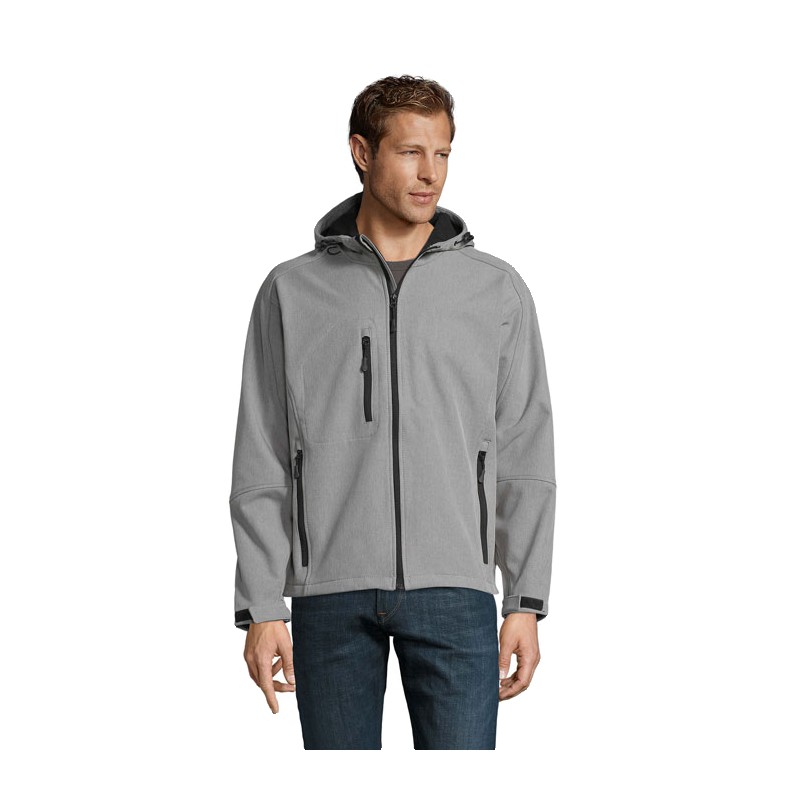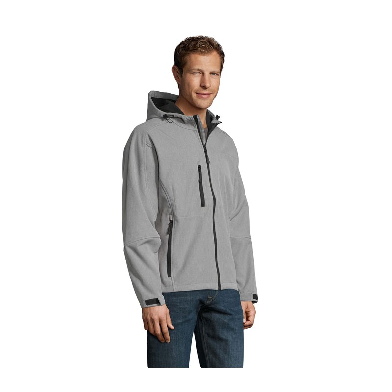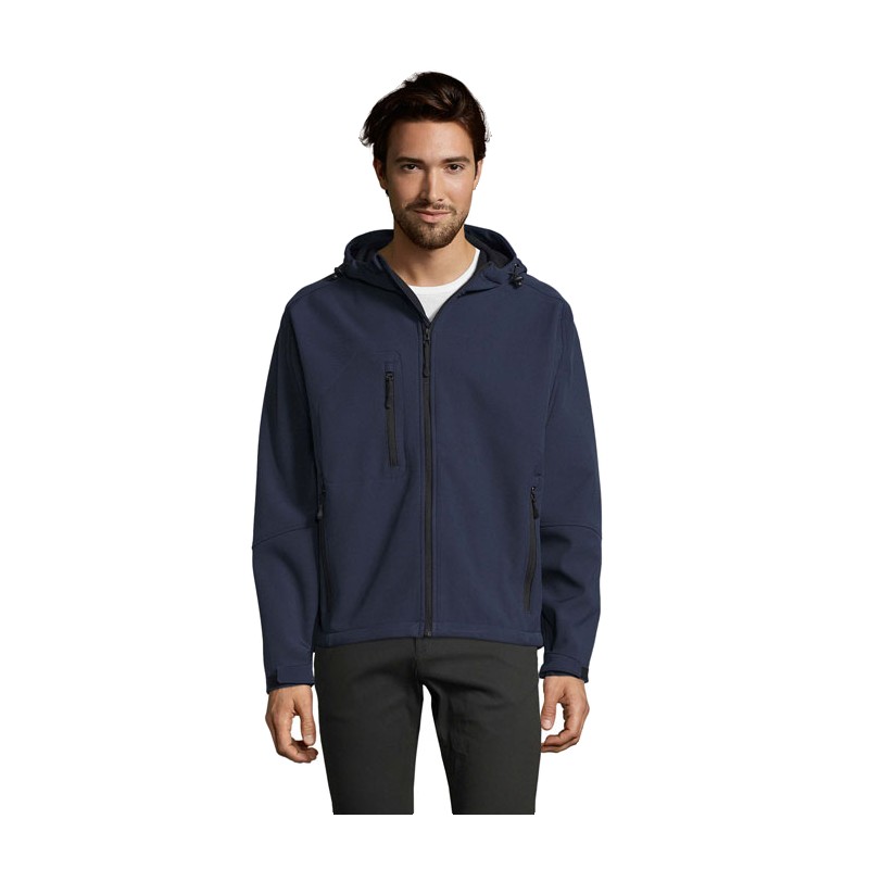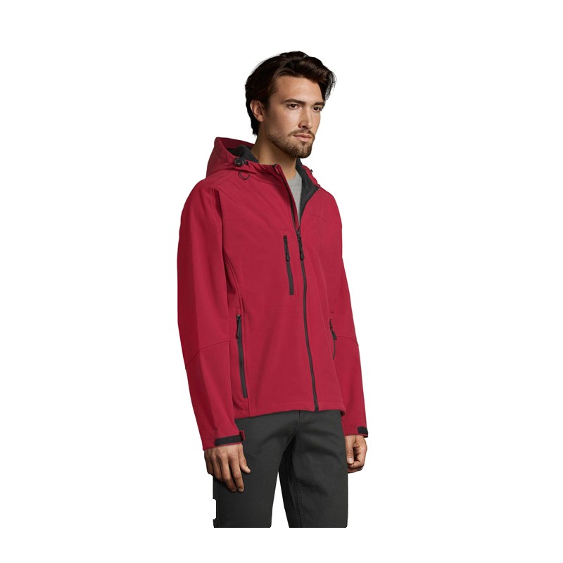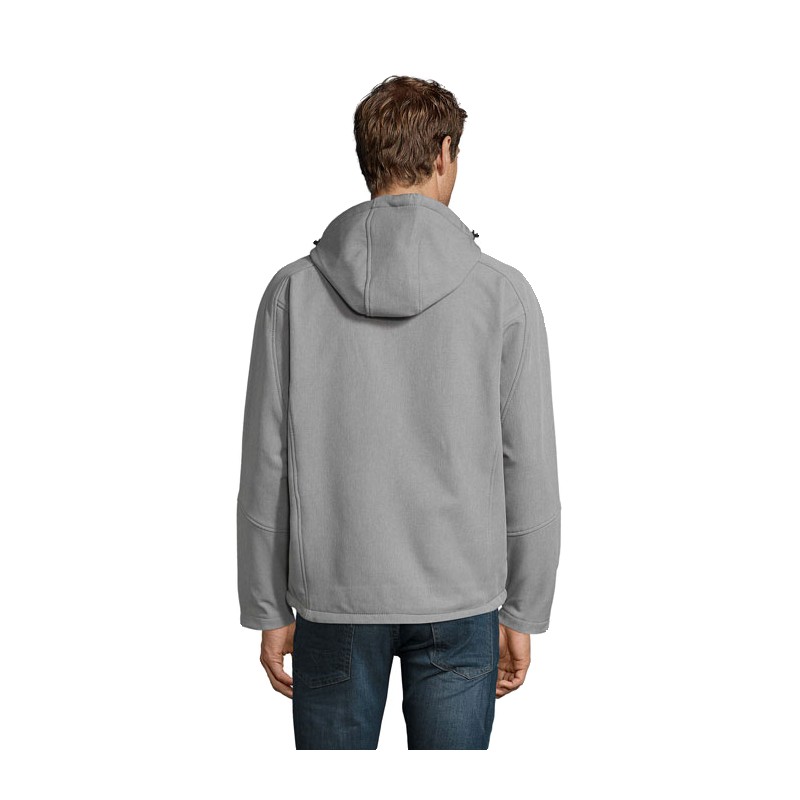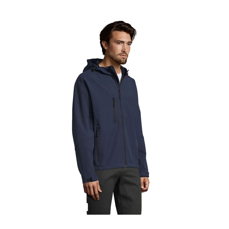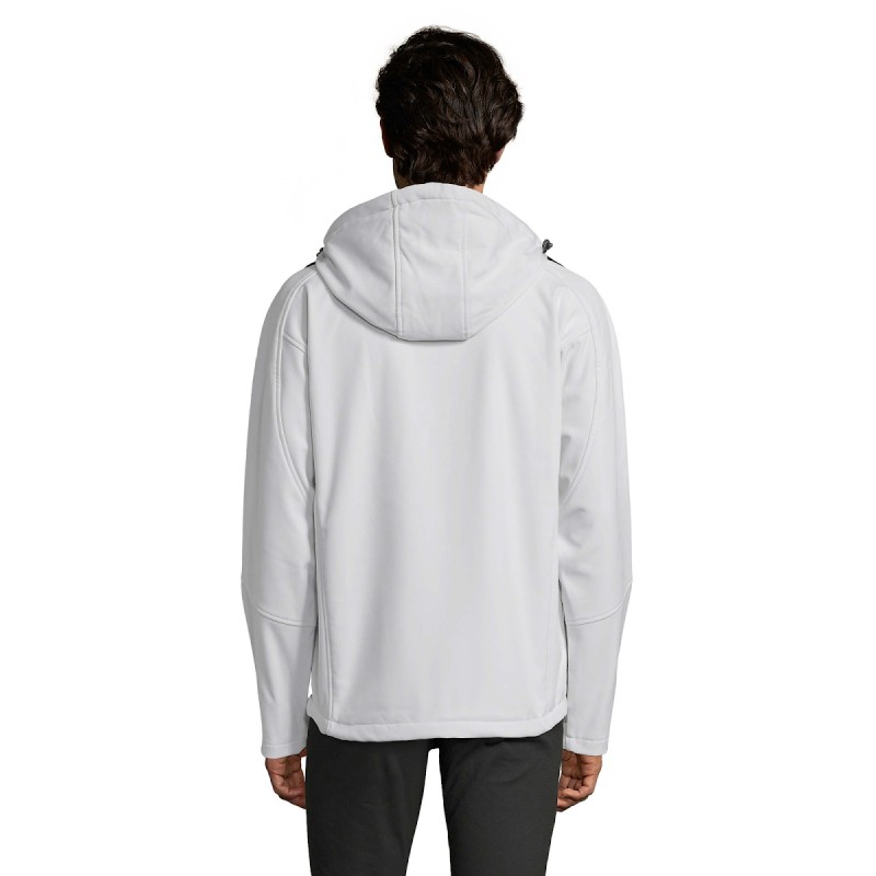 SOL'S REPLAY men softshell jacket 340g. 2 poches latérales et 1 poche poitrine zippées. Cordon de serrage réglable à la taille. Bas de manches ajustables avec bande auto-agrippante. Capuche avec cordon de serrage. Fabric details: 94% polyester - 6% élasthanne. Intérieur polaire: 100% polyester. 3 couches. Membrane 8000 mm imperméable et respirante. OEKO-TEX®. Only Sold with Print.