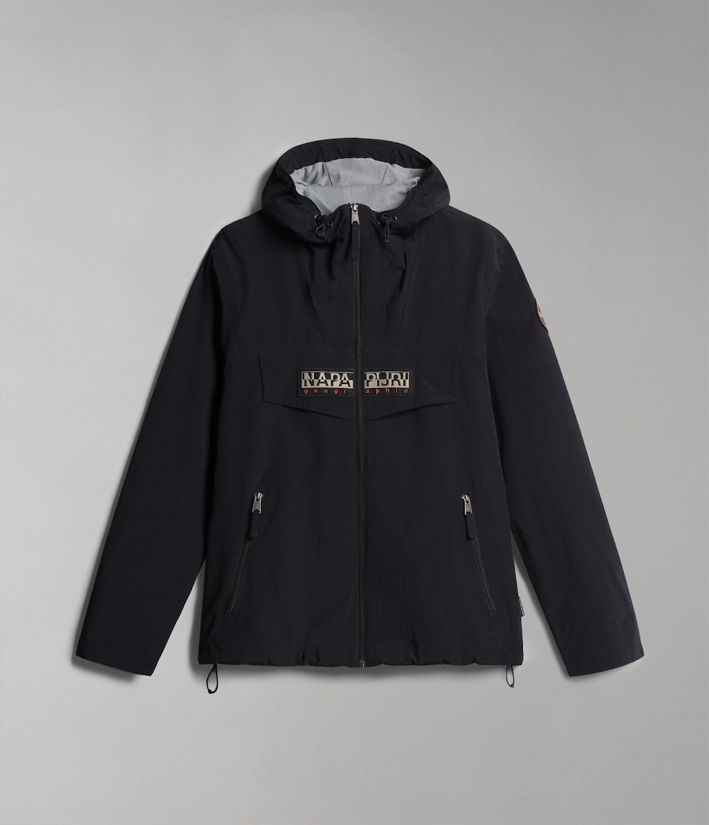 100% polyamide. Doublure intérieure en filet, coutures étanches et ourlets et capuche réglables. Doté d’un tissu imperméable et d’une membrane latérale arrière, de poches latérales et d’une fermeture zippée sur le devant.