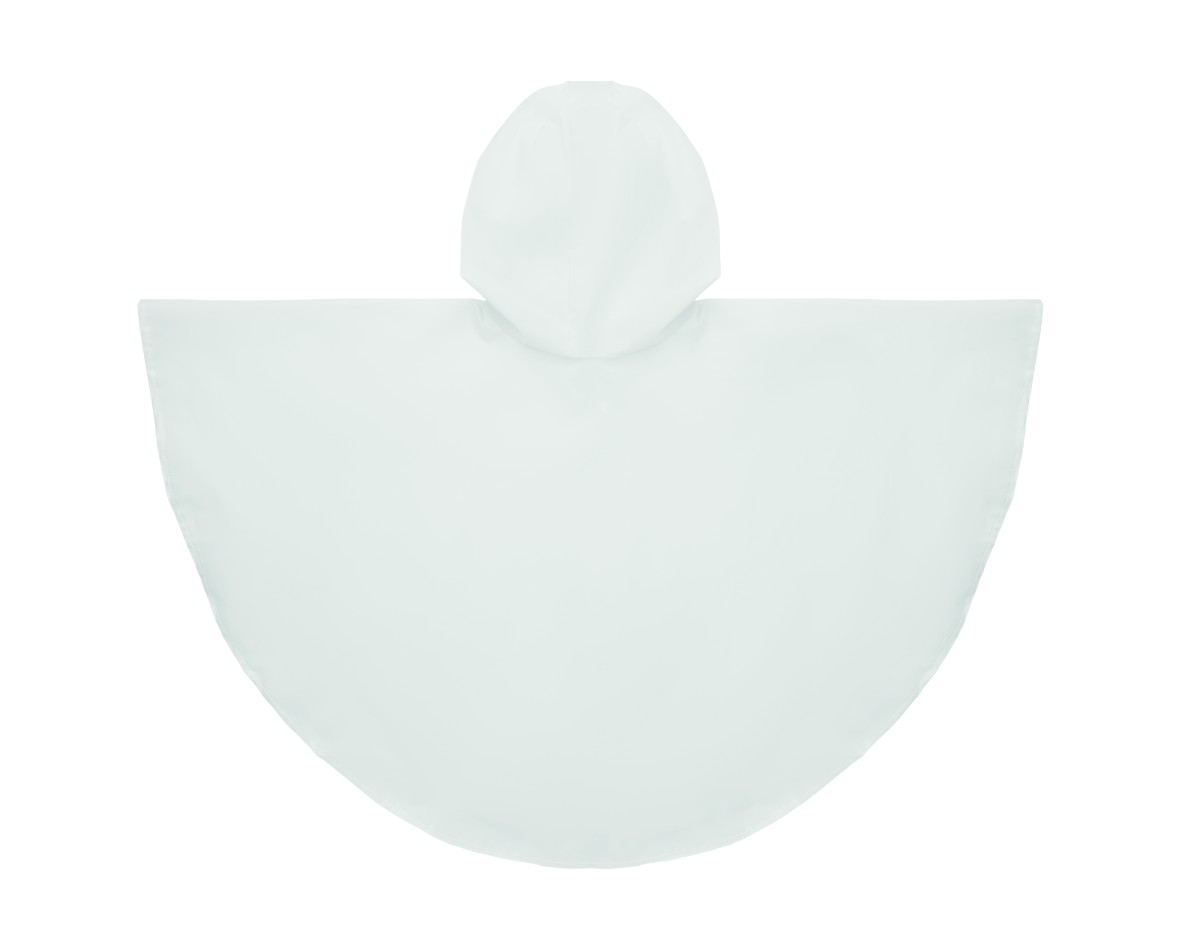 Vêtement de pluie en PEVA pour enfants (2-5 ans) avec capuche. Fermeture par bouton-pression.