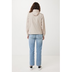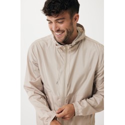 Veste légère coupe moyenne unisexe 100 % de polyester recyclé post-consommation en 70 G/M². La veste est dotée d'une capuche réglable avec cordon élastique, d'une fermeture à zip inversée sur le devant et de poches passepoilées. Toutes les fermetures à zip sont dotées de tirettes supplémentaires de couleur assortie pour un look raffiné. Les poignets sont entièrement élastiques. Le dos de la veste est légèrement plus long et incurvé et l'ourlet inférieur est doté d'un élastique et de bouchons pour une meilleure protection. Imprégnation déperlante sans fluor ni PFAS. L'utilisation de matériaux de tissus recyclés authentiques et les déclarations d'impact environnemental sont garanties, grâce à l'utilisation du traceur physique disruptif AWARE™ et de la technologie blockchain. En scannant le code QR, vous aurez accès à un passeport numérique dédié. 2 % des recettes de chaque produit vendu seront reversés à Water.org. Ce produit est certifié OEKO-TEX® STANDARD 100.