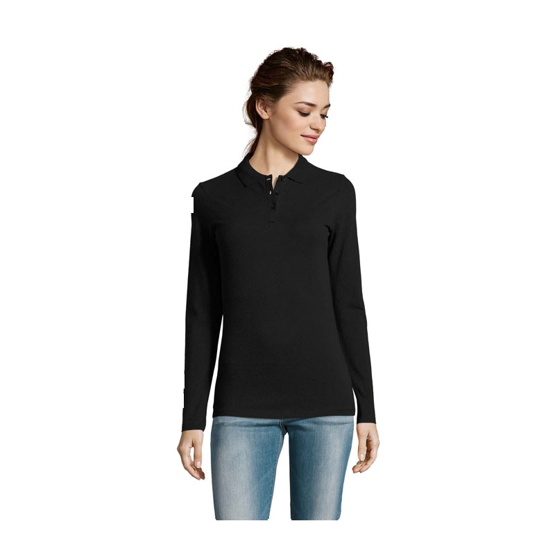SOL'S PERFECT LSL WOMEN, POLO PIQUÉ MANCHES LONGUES FEMME, 100% coton peigné Maille piquée 180, Col en côte 1X1, Manches longues, Patte de boutonnage 3 boutons, Coupe ajustée, Bande de propreté intérieure col, (1) Oxblood chiné : 60 % coton / 40 % polyester. Pour la correspondance des tailles, veuillez vous référer au size chart dans la documentation produit.