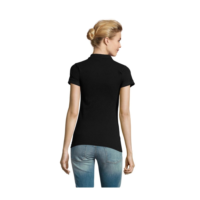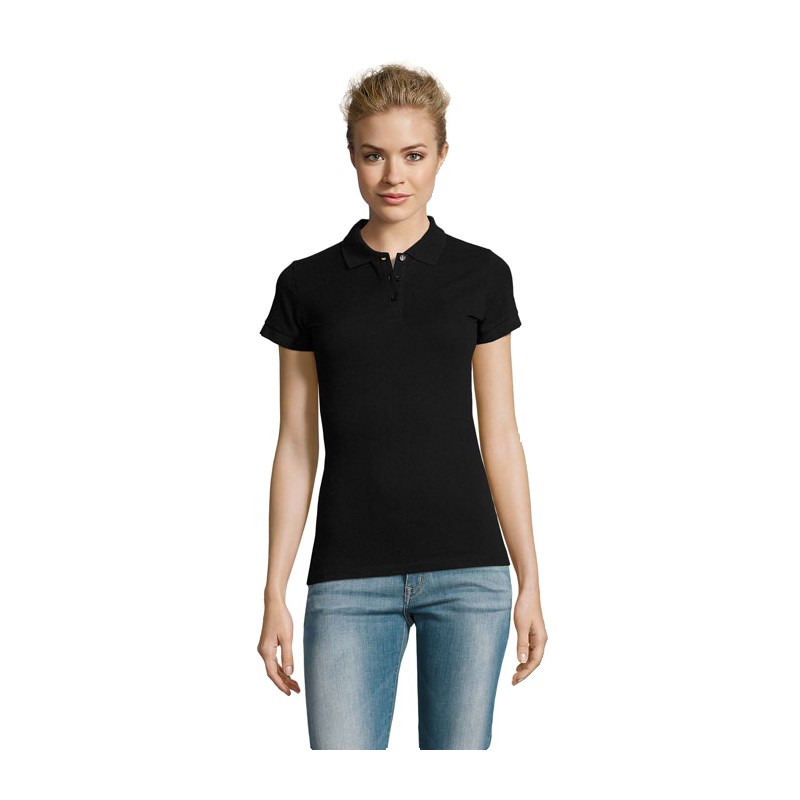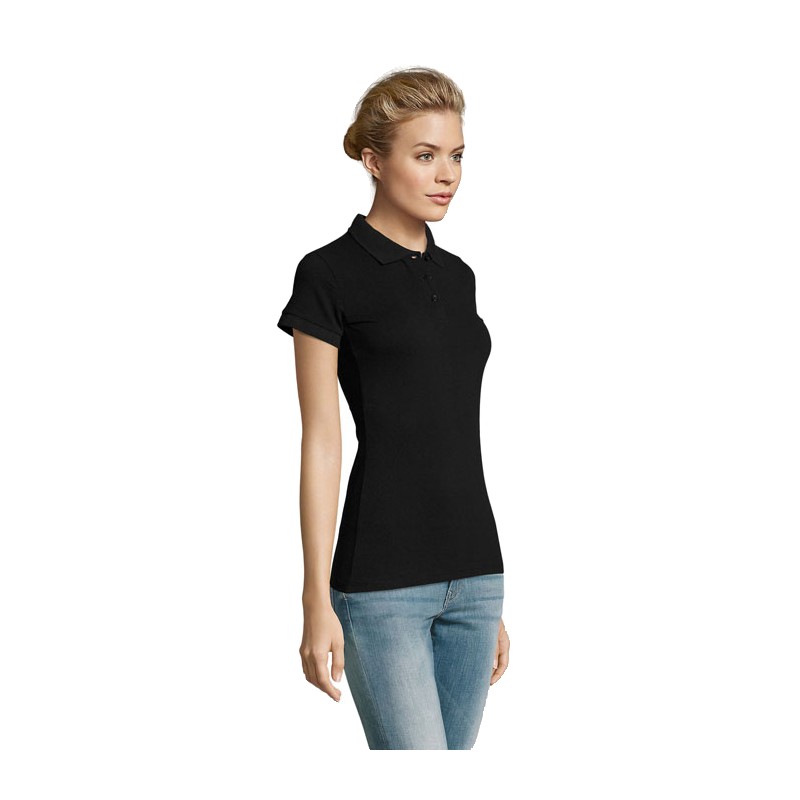 SOL'S PERFECT WOMEN, POLO FEMME, 100% coton peigné Ringspun Maille piquée 180, Col et bas de manches en côte 1x1, Bande de propreté au col, Manches courtes, Patte de col 3 boutons nacrés ton sur ton, Coupé cousu, Coupe cintrée, Bouton de rechange dans couture intérieure côté, (1) Blanc chiné : 98 % coton / 2 % viscose, (2) Gris chiné : 85 % coton / 15 % viscose, (3) Anthracite chiné : 60 % coton / 40 % polyester; (4) Oxblood chiné : 57 % coton / 38 % polyester / 5 % élasthanne; (5) Denim chiné : 57 % coton / 38 % polyester / 5 % élasthanne. Pour la correspondance des tailles, veuillez vous référer au size chart dans la documentation produit.