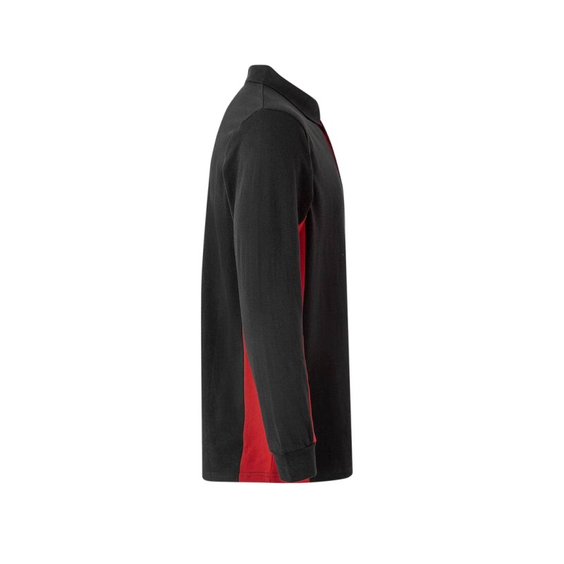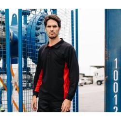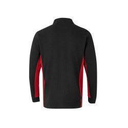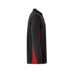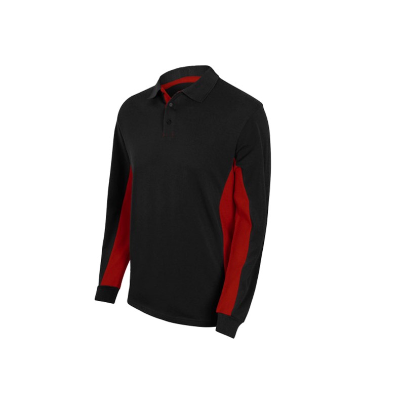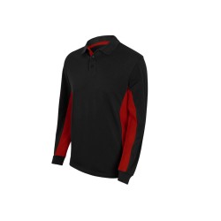 Maille piquée. Plaquette 3 boutons ton sur ton. Intérieur de la plaquette contrasté. Col et poignets en bords côte. Panneaux contrastés sur les côtés et sous les manches. Bande de propreté contrastée.