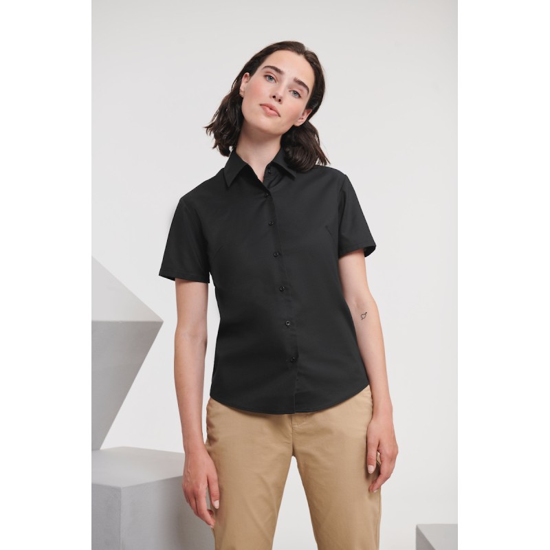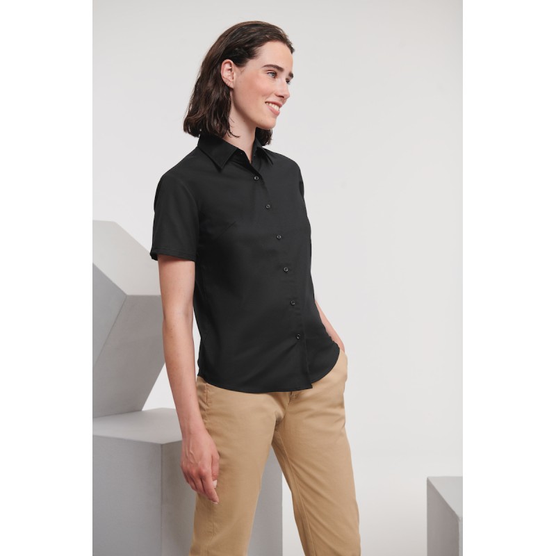 LADIES' SHORT SLEEVE TAILORED OXFORD SHIRT