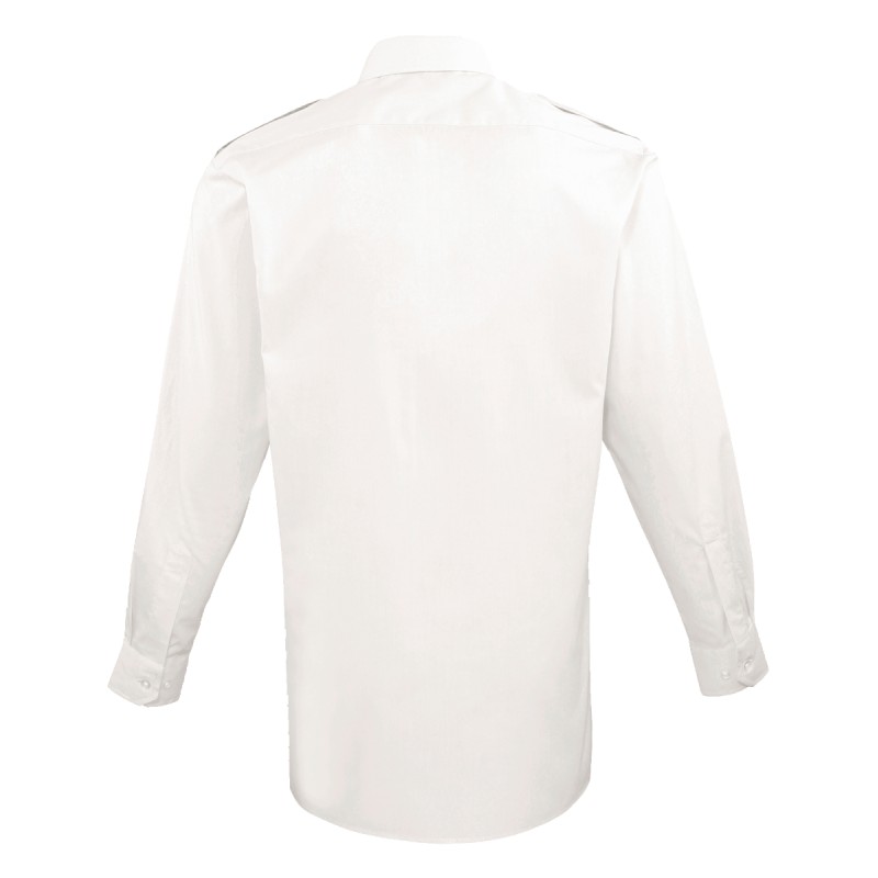 65% polyester / 35% coton, popeline simple. Entretien facile. 2 poches avant boutonnées et emplacement stylo sur côté gauche. Poignets boutonnés. Galons non fournis. Tour de col en cm entre parenthèses.