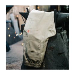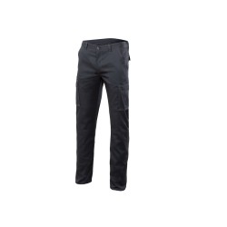 Fermeture centrale à glissière et bouton. Coutures contrastées. Taille élastiquée. Double couture de sécurité. Six poches : 2 poches latérales. 2 poches avec fermeture à double rabat, velcro® et curseurs. 2 poches arrière de renfort, à rabat et velcro®.