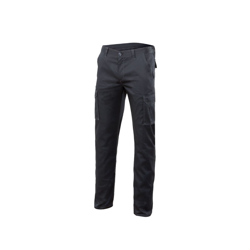 Fermeture à bouton avec braguette zippée. Coutures contrastées et renforcées. Taille élastiquée. 6 poches : 2 poches latérales, 2 poches avec double rabat, Velcro® et curseurs, 2 poches arrière avec rabat et Velcro®.