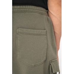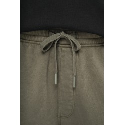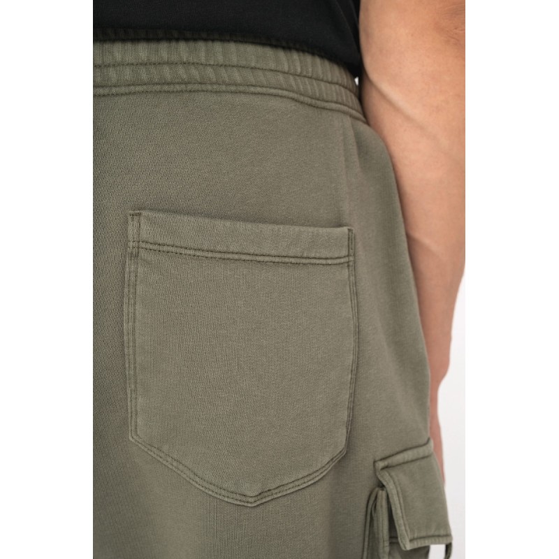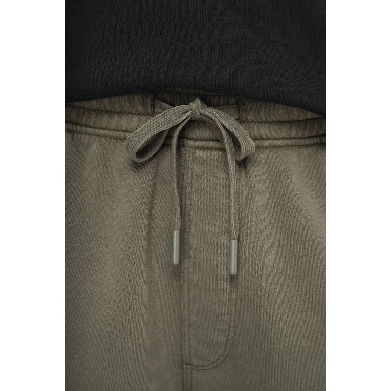 85% coton biologique / 15% polyester recyclé post-consumer. Coton peigné. Lavé aux enzymes. Molleton non gratté 3 fils LST (Low Shrinkage Terry : molleton pré-rétréci). Ceinture élastiquée. Cordon de serrage plat avec embout en plastique recyclé, mat ton sur ton. Œillets brodés. Fausse braguette. Double surpiqûre fourche devant et dos pour plus de maintien. Poches côtés et poches goussets latérales plaquées bas de vêtement avec rabats. Poches plaquées dos. Ourlet bas de jambes double surpiqûre. Vêtement teint après montage : les couleurs peuvent légèrement varier d'une pièce à l'autre. Ce produit est susceptible de déteindre au contact avec des surfaces ou vêtements clairs.