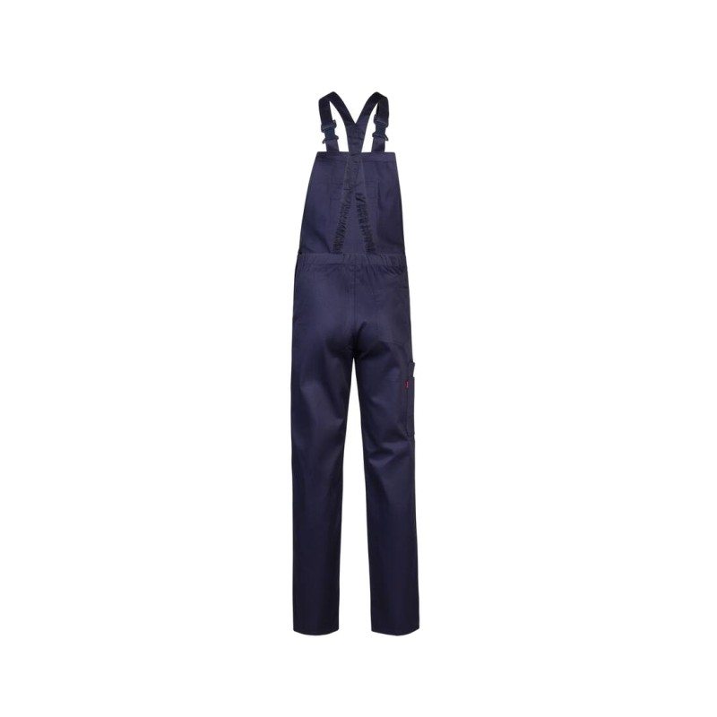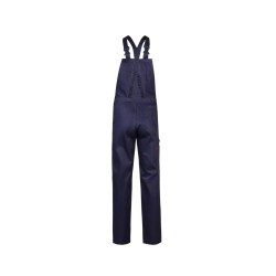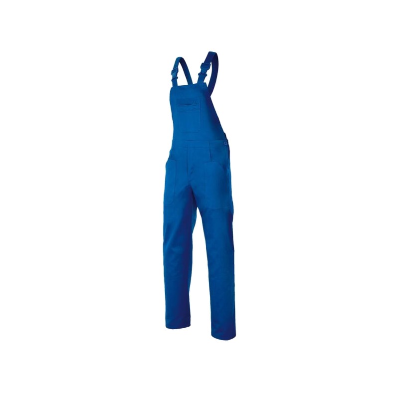 Fermeture centrale zippé. Boucles en PVC. Boutons sur les côtés. Taille et bretelles élastiquées. Pinces sur le devant. Double couture de sécurité. Six poches : Poche poitrine zippée avec plusieurs compartiments. 2 poches frontales. 1 poche arrière. 2 poches à outils sur la jambe droite, situées l'une en-dessous de l'autre.