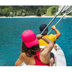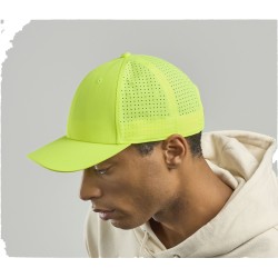 Fabriqué en nylon léger, ventilé et brillant, Breezy possède une couronne percée et une bande en tissu 3D qui le rendent frais et sec.. 6 PANNEAUX, Nylon, MID VISOR, oeillets surpiqués, 6 COUTURES SUR LA VISIERE. Main fabric: 100% nylon_x000D_