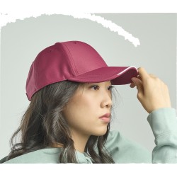 Classic automotive cap revisited in recycled polyester jacquard. Structured shape with HQ hook-and-loop closure with plastic hole. Curved visor with contrasting piping insert, typical of the automotive world.
