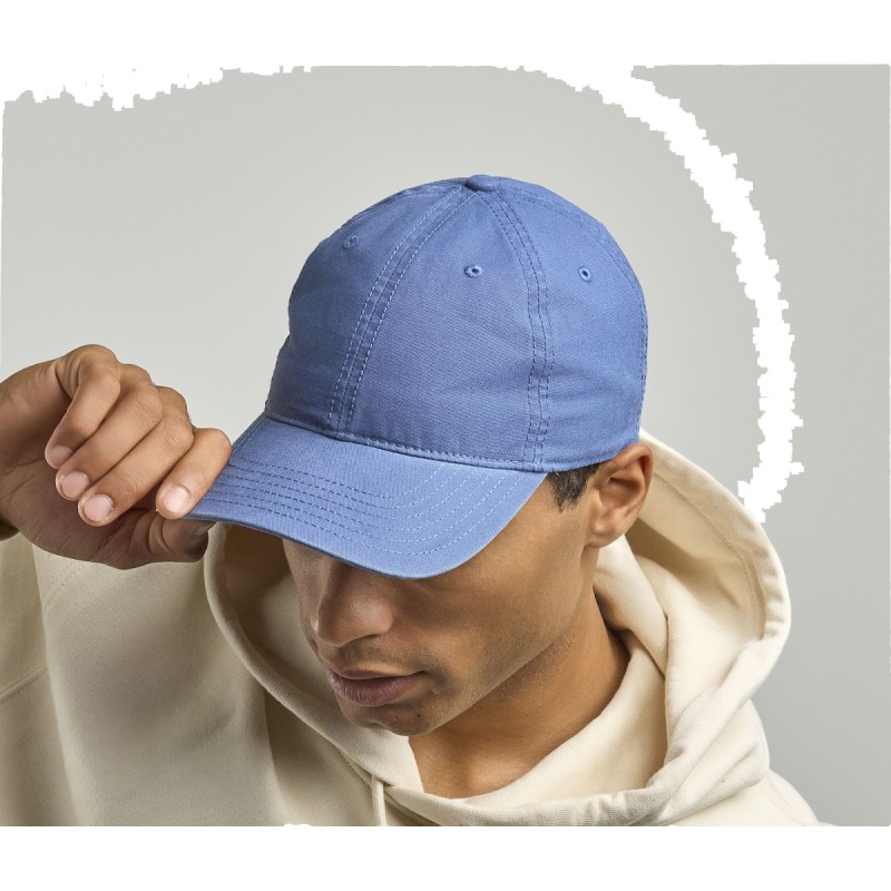 Groovy ajoute un look vintage à la collection grâce au tissu en toile avec lavage aux enzymes et à une fermeture avec boucle en métal.. 6 PANNEAUX, Cotton, MID VISOR, Baseball unstructured, oeillets surpiqués, 6 COUTURES SUR LA VISIERE. Main fabric: 100% coton