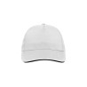 Casquette 5 panneaux en 100% coton léger, avec sandwich à contraste sur la visière, adaptés à tous les événements et au monde de la promotion publicitaire. Fermeture arrière avec Velcro.. 5 PANNEAUX, Cotton, VISOR CURVED, SANDWICH, FERMETURE PAR VELCRO, 6 COUTURES SUR LA VISIERE. Main fabric: 100% coton
