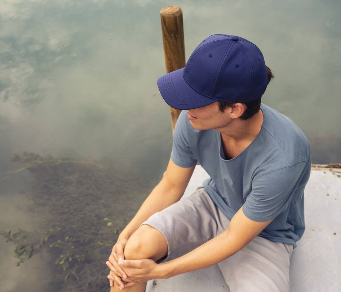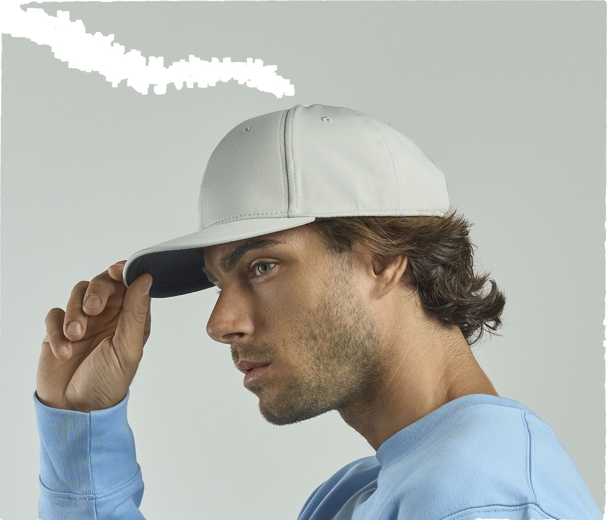 6 panneaux. Fermeture Velcro®. Polyester teint par transfert chaud et non par immersion dans l'eau.