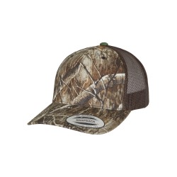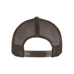 98% Polyester / 2% Polyuréthane. Casquette Trucker 6 panneaux motif camouflage. Surpiqûres à 8 rangs sur la visière.