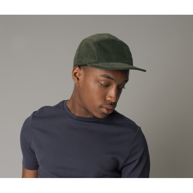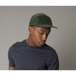 5 panneaux. Visière plate. Fermeture par sangle en tissu et boucle.