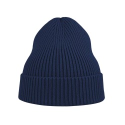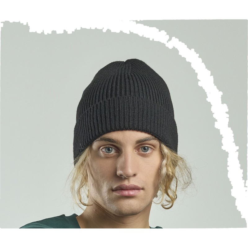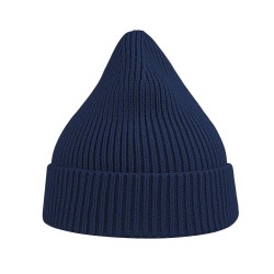 Bonnet en tricot, maille fine 1x1. Avec rabat.