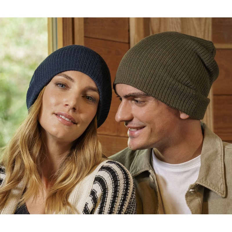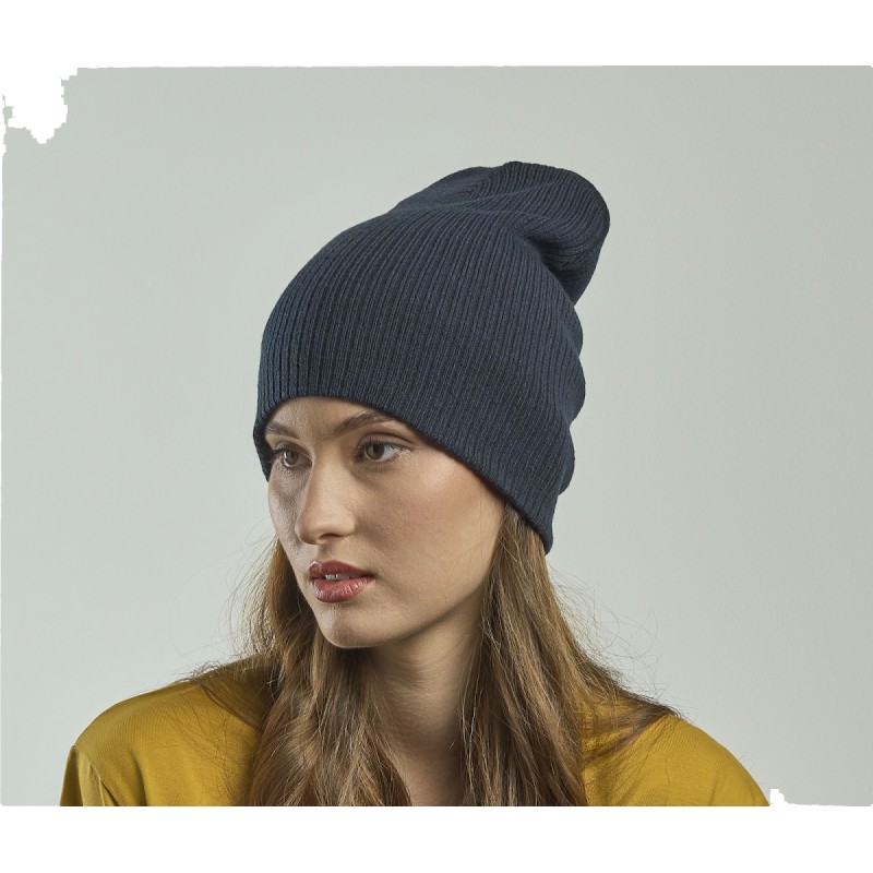 Long shaped beanie in recycled polyester yarn. Double layer and circular machine finish. Soft hand feel for everyday use.
