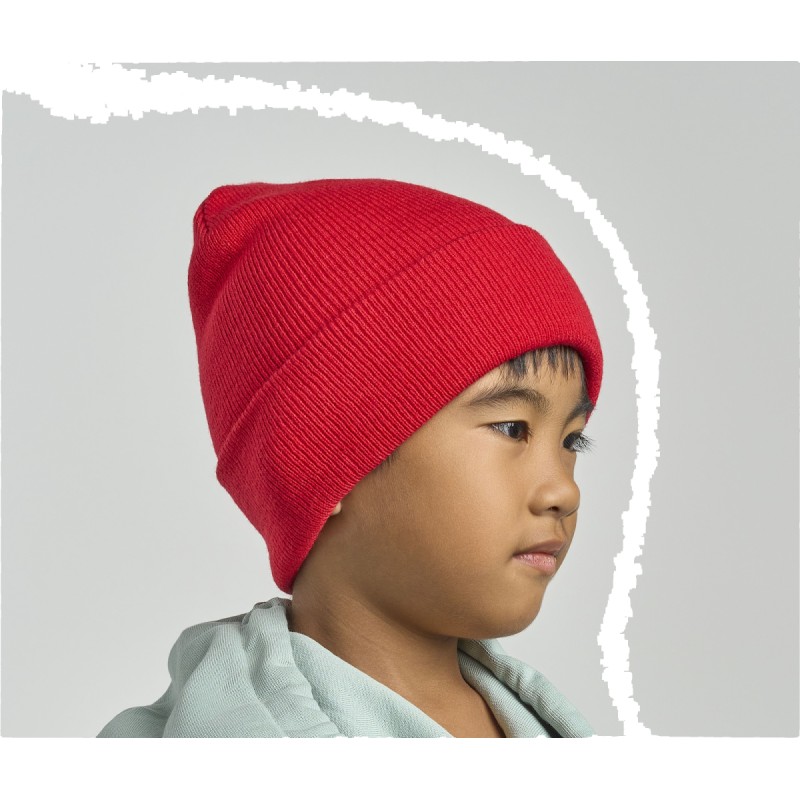 Classic shaped beanie in kids size, with cuff in recycled polyester yarn. Double layer and circular machine finish. Soft hand feel for everyday use.