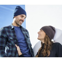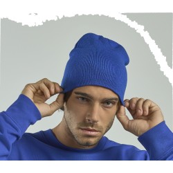 Comfortable beanie in recycled polyester yarn. Double layer and circular machine finish. Soft hand feel for outdoor activities and everyday use.