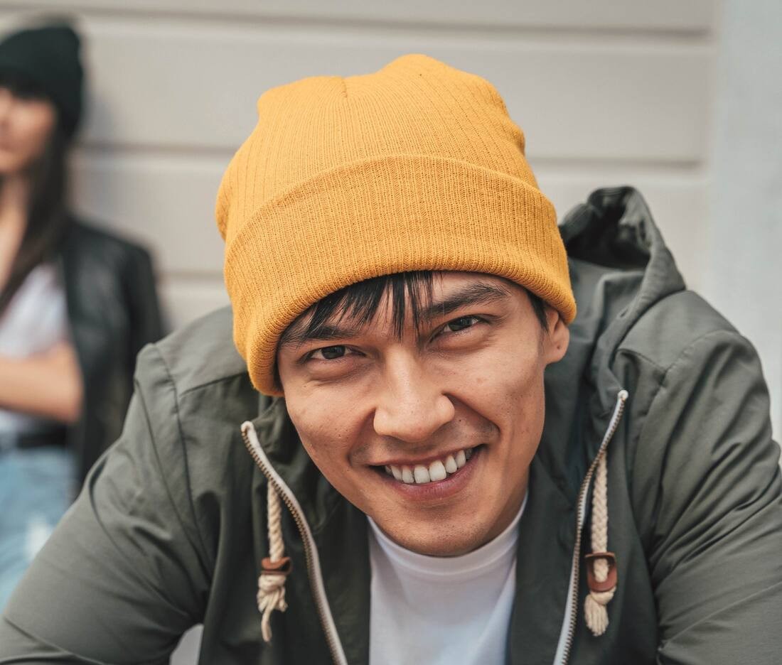 The RIO beanie is constructed in and blend with cuff and a narrow rib knit that ensures .. BONNET, Acrylic, POIDS: 80gr environ, double épaisseur. Main fabric: 50% polyester - 50% acrylique