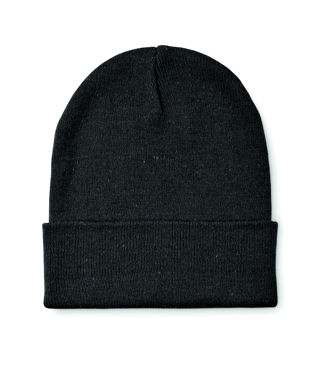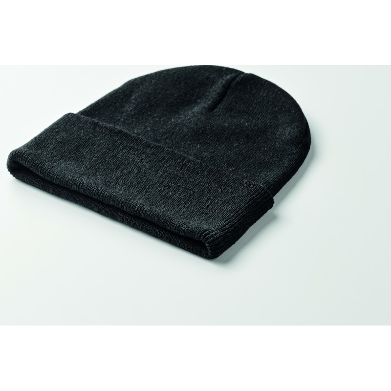 Bonnet tricoté unisexe en polyester (64 %) et acrylique (36 %) doux et extensible, avec revers. Modèle extensible à taille unique.