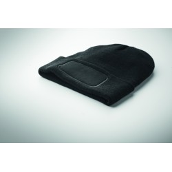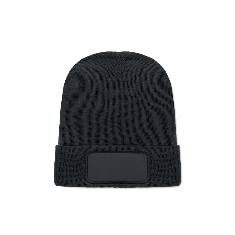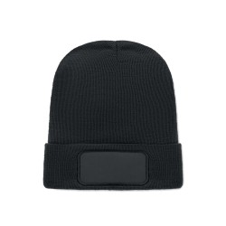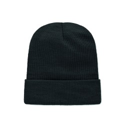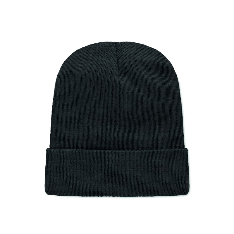 Bonnet tricoté unisexe en polyester doux et extensible RPET avec revers et écusson.