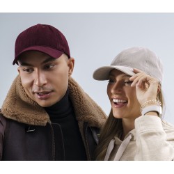 Unstructured 6 panels baseball hat in recycled polyester corduroy 21 wales with mid visor and metal buckle closure with metal hole. Vintage look and warm handfeel.